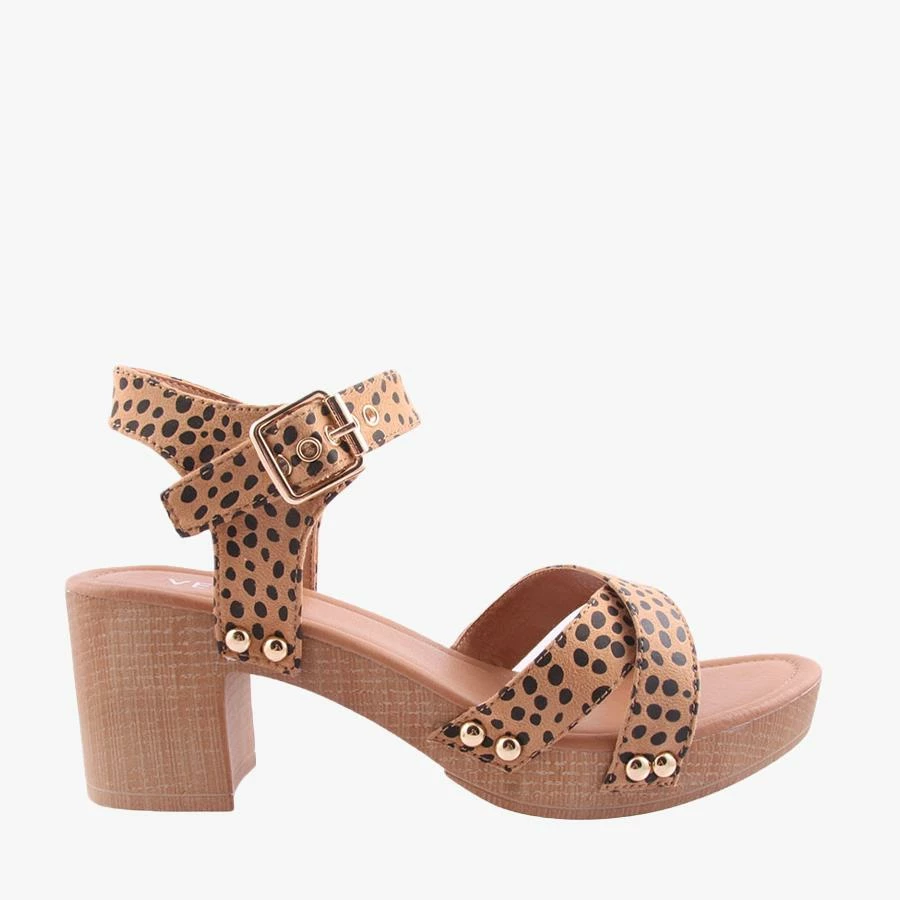 Complete your look with Lulu by Verali. This women’s heeled sandal features a cross over design with gold studs on the lightweight sole.